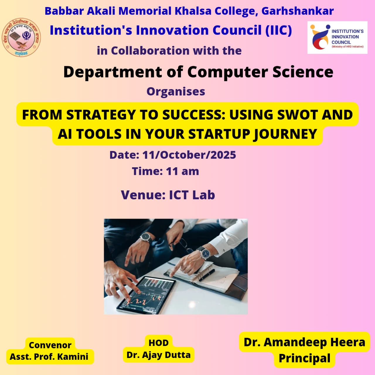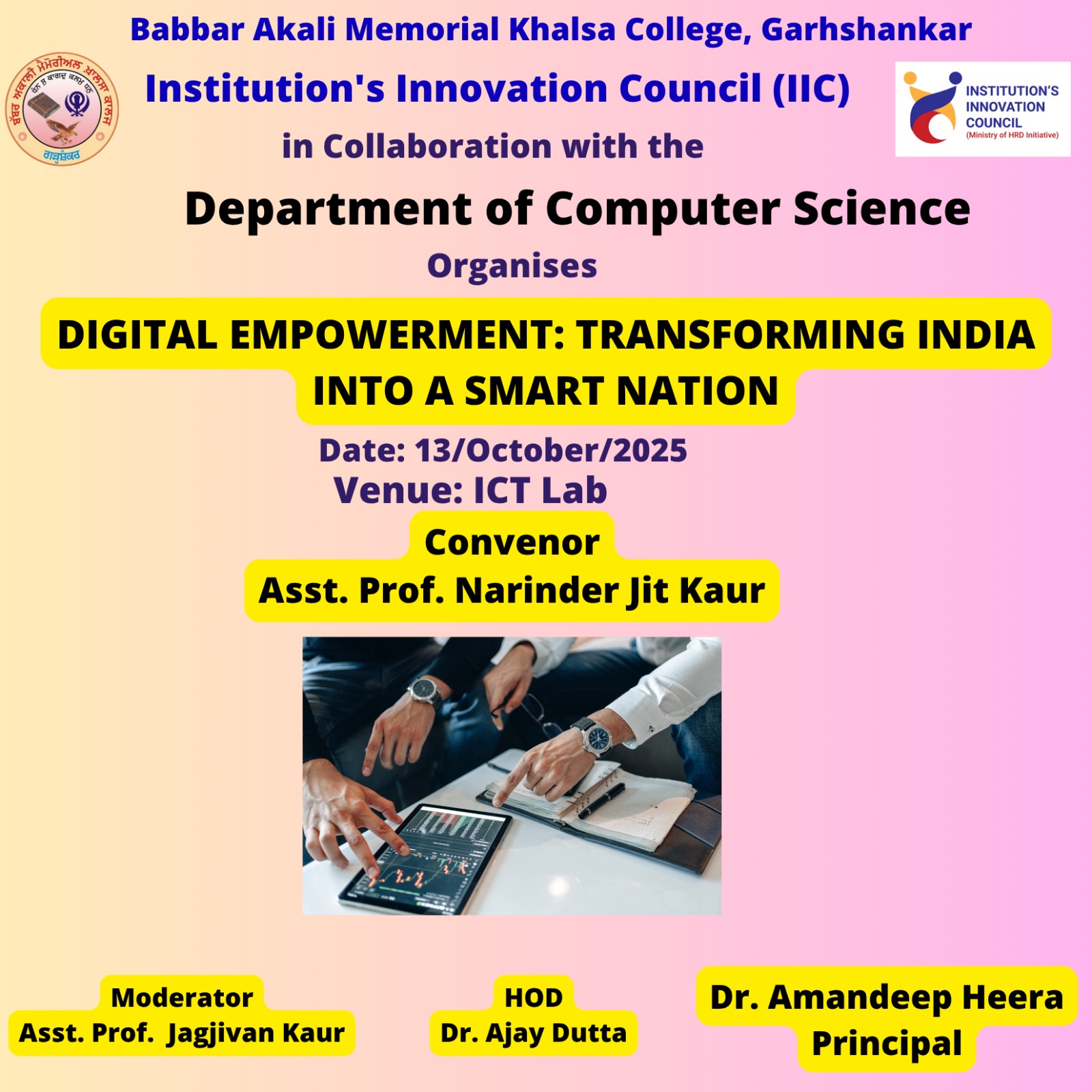 From Concept to Click: Creating Effective GUI Designs Organized by:Institution’s Innovation Council (IIC)in collaboration with theDepartment of Computer Science,Babbar Akali Memorial Khalsa College, Garhshankar Date: 13th October 2025Venue: ICT Lab Objective of the Event The main objective of this event was to enhance students’ understanding of Graphical User Interface (GUI) Design and to develop their […]